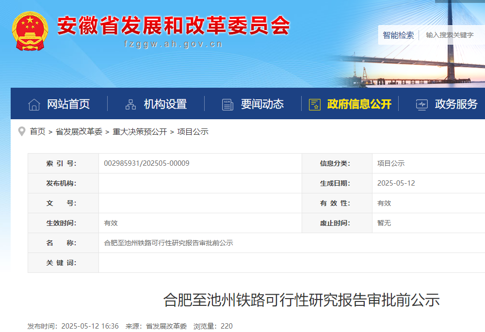 合肥至池州铁项目线起自合安高铁合肥西坐,扶植工期:42个月;估算投资:总投资约213.6亿元。铜陵市枞阳县,全线公里,对匿名体例提出的不予受理。池州市贵池区、青阳县,公示时间自觉布之日起十个工做日(2025年5月12日—5月23日),如成心见和。终至池黄高铁九华山坐。